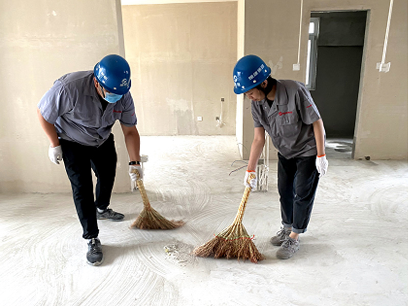 期间,大家分成12个小组,协同项目管理人员对4栋楼12个单元即将迎检的264户进行了“查缺补漏大排查”、“环境卫生大扫除”,而后对现场裸土区域进行了覆盖,现场劳动热情高涨。