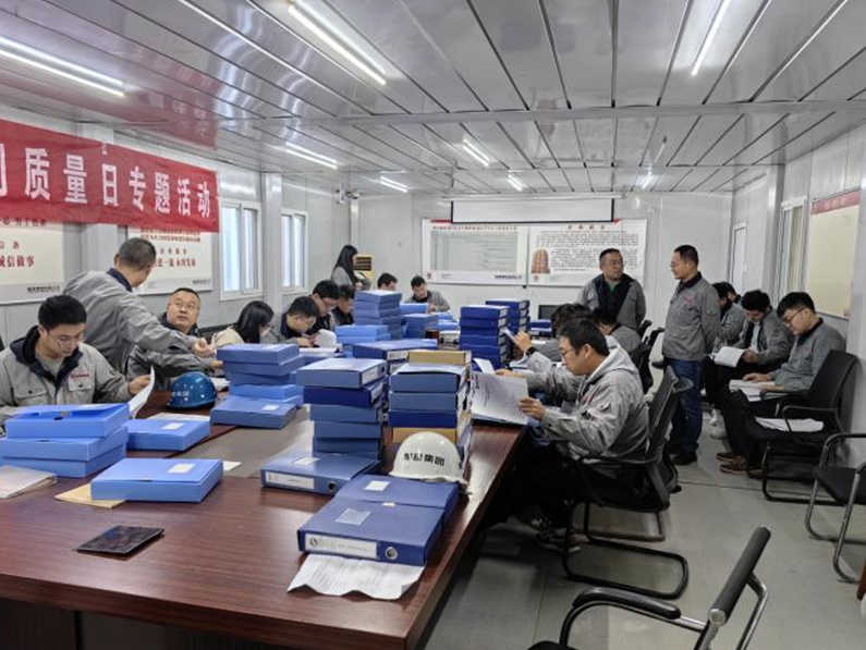 2025年10月20日下午,十公司在烟台毓璜顶医院老年照护康复医学中心工程会议室召开“提升资料员资料整理能力、提高项目资料质量-优秀资料观摩及资料整理经验交流”为主题的“质量日”活动。副总经理姜爱国、技术质量处成员、项目所在地在芝罘区、莱山区、高新区的土建、装饰装修及钢结构专业的资料员、试化验员及分管资料主任工程师共计30余人现场参加。
