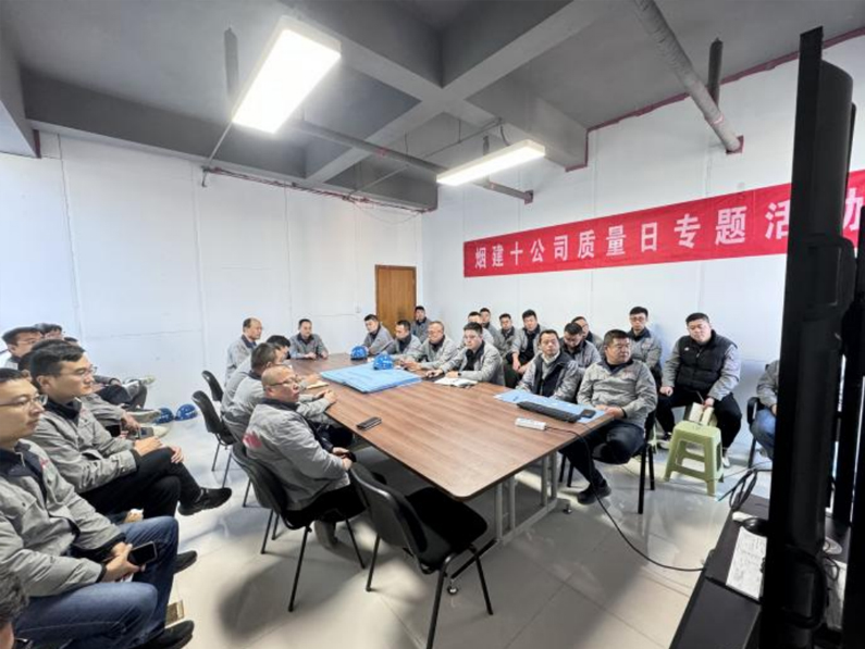 2025年11月20日下午,十公司在蓝色智谷12号楼装饰改造项目召开“持续开展高品质建造、不断提高管理人员质量意识为主题的“质量日”活动。副总经理姜爱国、技术质量处成员、对标新东升学习小组、部分新开工项目项目经理、主任工程师共计34人现场参加。