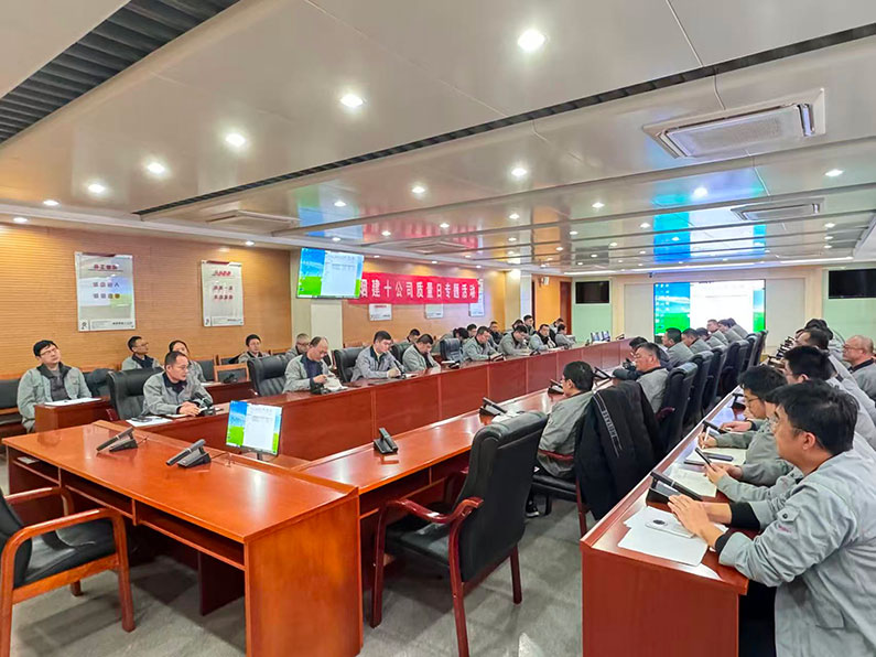 2026年1月20日下午,十公司在公司驻地四楼会议室举办以“高品质建造学习与实施总结”为主题的“质量日”活动。副总经理姜爱国,技术质量处成员,项目所在地在烟台市区的项目经理、主任工程师共计40余人现场参会,施工员、质检员及外埠项目管理人员以视频形式参会。