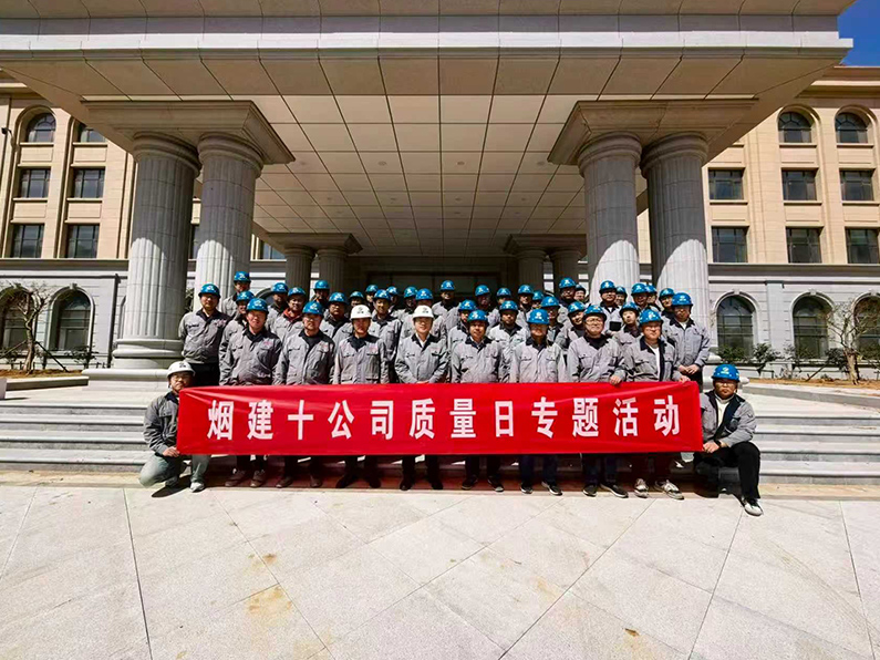 2026年4月20日下午,十公司在烟台毓璜顶医院老年照护康复医学中心项目举办以“竣前品质排查,全面落实零缺陷交付”为主题的“质量日”活动。常务副总经理张建栋,技术质量处成员,部分项目经理、主任工程师、质检员共计30余人现场参加。